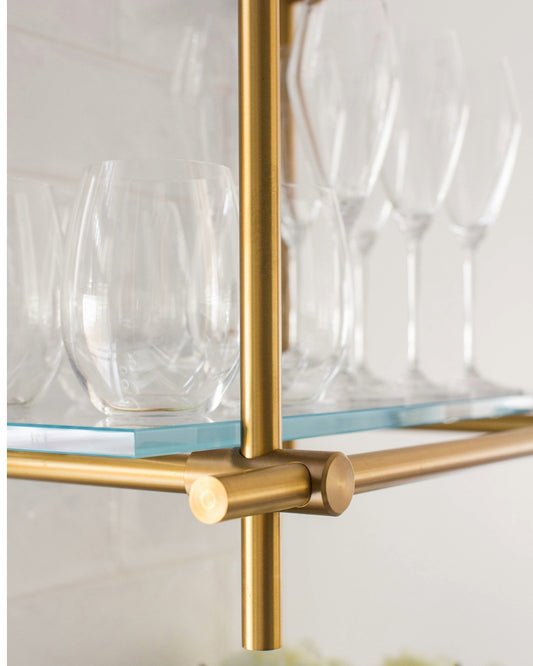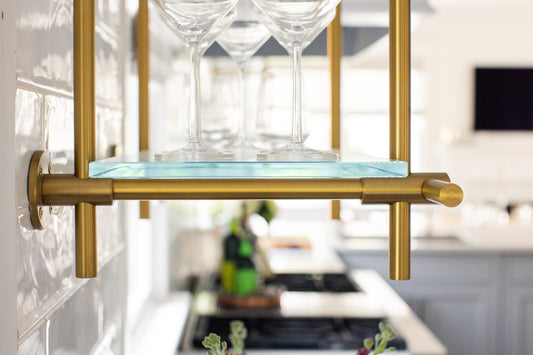 Wall Mounted | Bistro Shelving | Warm Brass with Glass Shelves | Amuneal Collector's Series