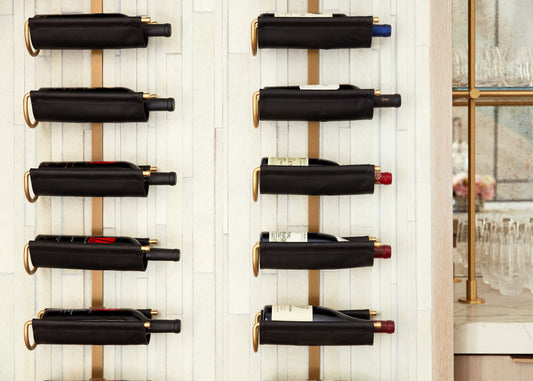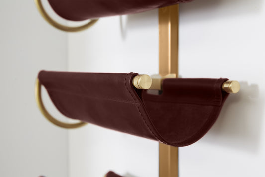 Leather and Bronze Wine Display | Warm Brass Fittings | Wall Mounted | Amuneal Wine Saddle